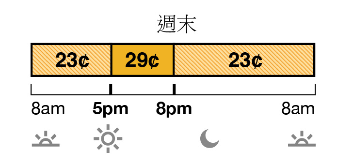 如果您能夠管理自己的能源習慣,我們的按使用時間收費方案可能會很適合您家。TOU 方案的費率是根據一天中的時間和季節來決定的。